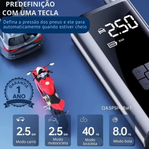 - Sistema de turbina potente : enche os pneus em menos de um minuto.