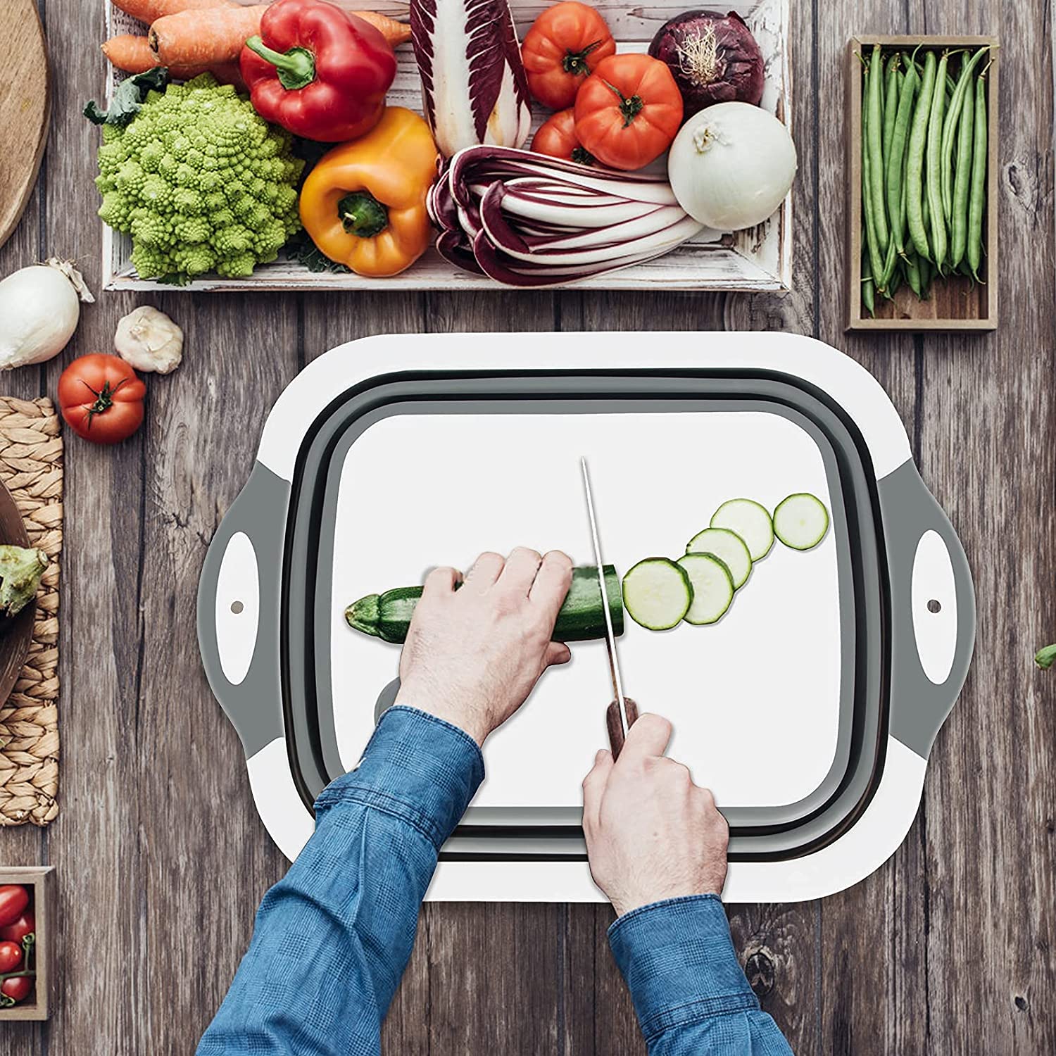 Além de ser prática, esta tábua de cortar é fácil de transportar e guardar.